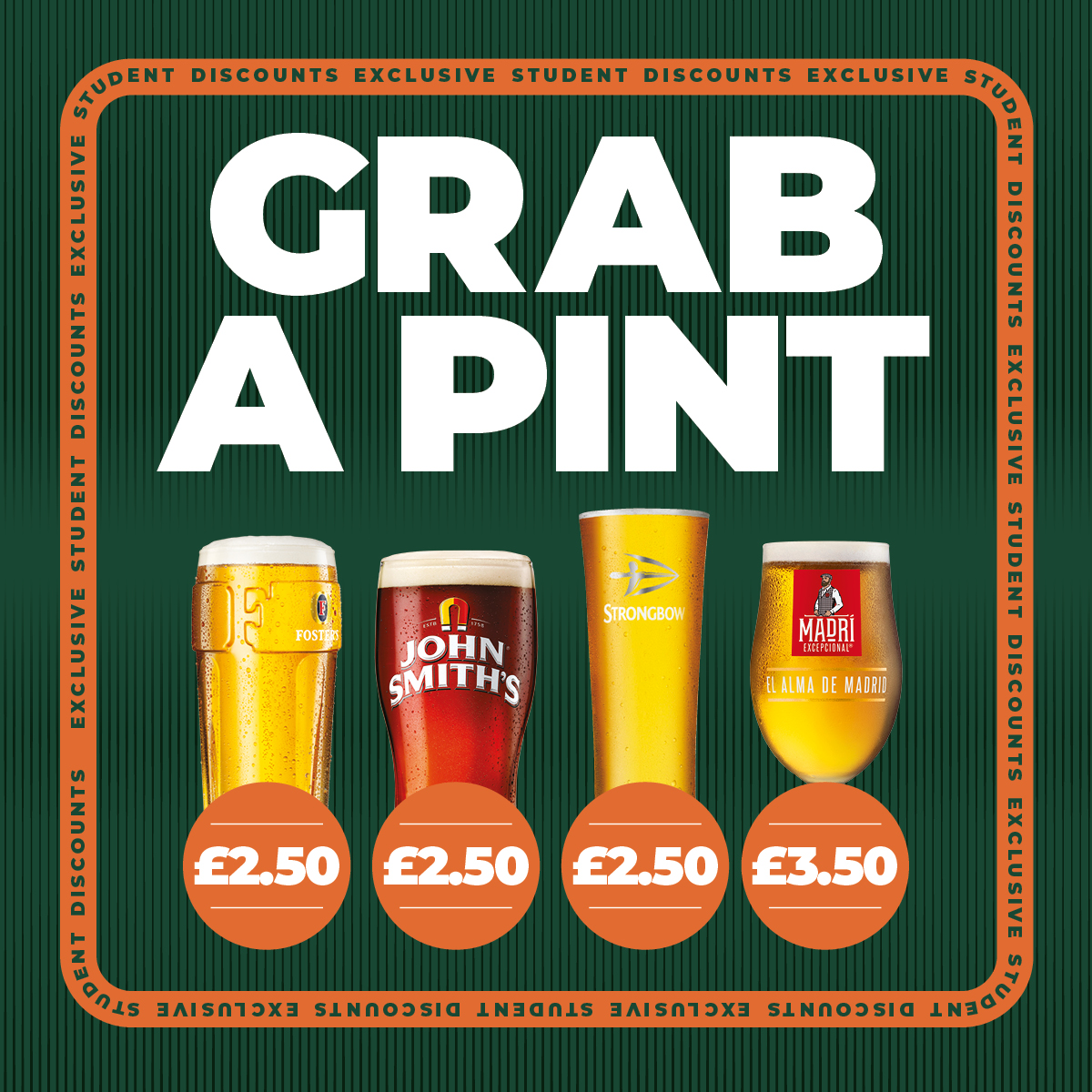Your student card isn’t just ID…it’s your golden ticket. Take full advantage of our Monday to Thursday student offers. From £2.50 pints, 4 Jager bombs for £10 and a single spirit and mixer for £1.99. Plus, many more exclusive discounts with our student card. Just swing by the pub to grab yours today.